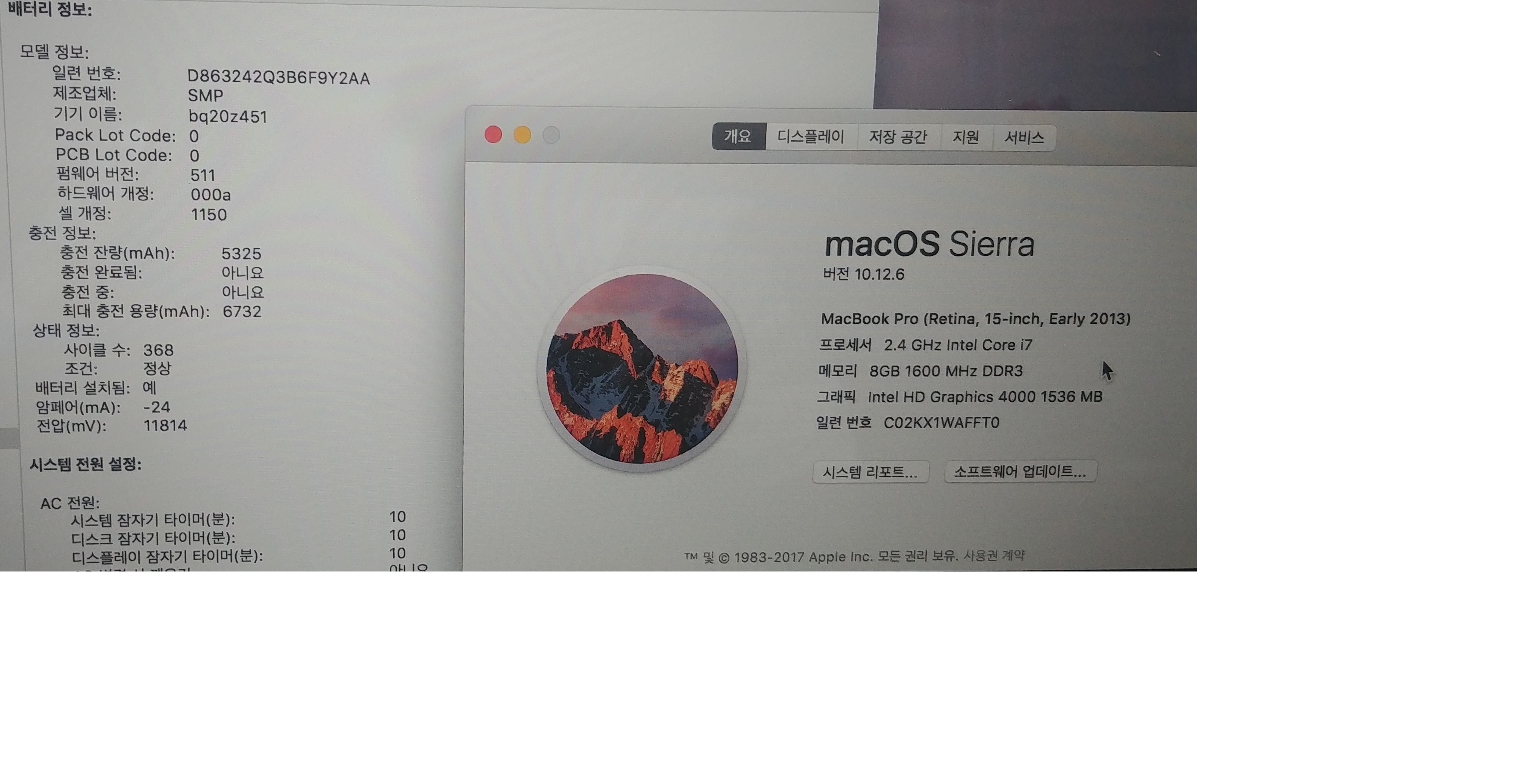 배터리 사이클 368  최대충전용량 6732