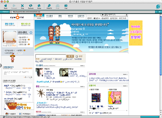 OS 버전과 프로그램 버전이 어떻게 되죠? 질문을 하실때에는... 매킨토시의 기종, OS 버전, 프로그램 버전을 정확히 적어주셔야 토맥의 고수님들이 빠르게 답변~해 주시겠죠...^^ 예 : "G4(866) / OS 9.2.2 / explorer 5.1.7 를 사용하는데... 싸이에 들어가면 글씨가 깨져 보여욤...^^;; preferences >>> language/font 에서 언어를 korea로 서체는 서울체나, 한강체로 변경해보셔요.